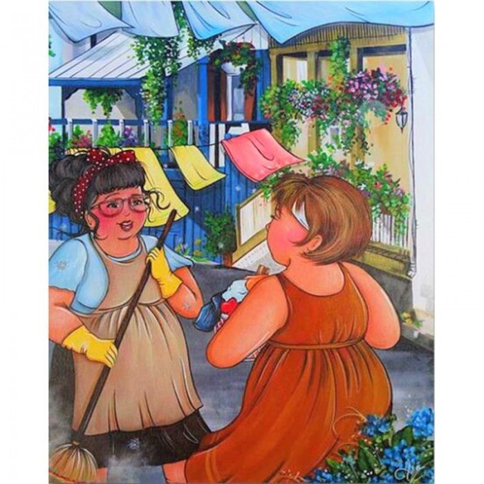 Knubbiga damer | Pratar med grannen